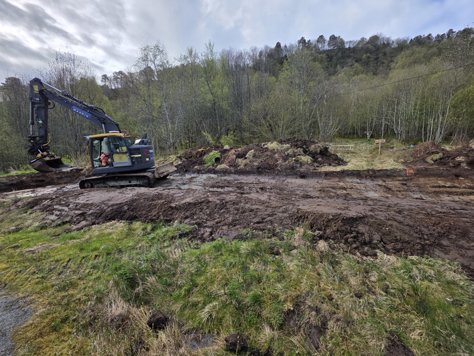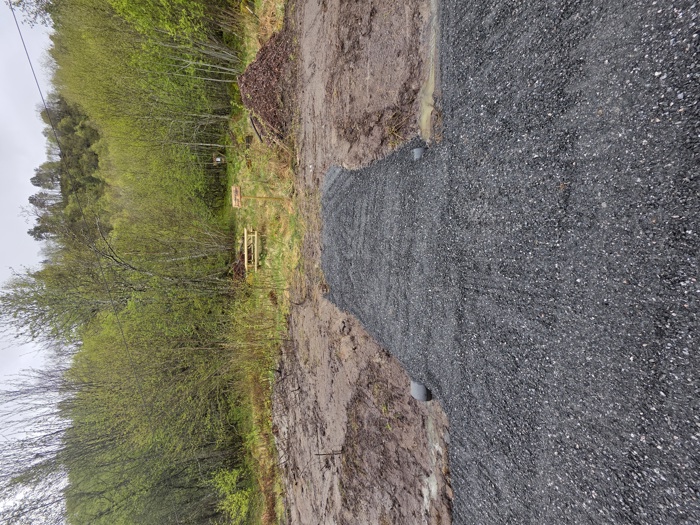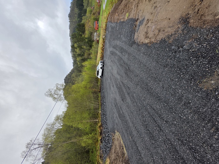 I dag 30.04.2025 står parkeringsplassen ferdig opparbeidet, og bare kosmetiske ting gjenstår. Det skal sås i kantene, og piknik bordet skal få en litt bedre plassering.
